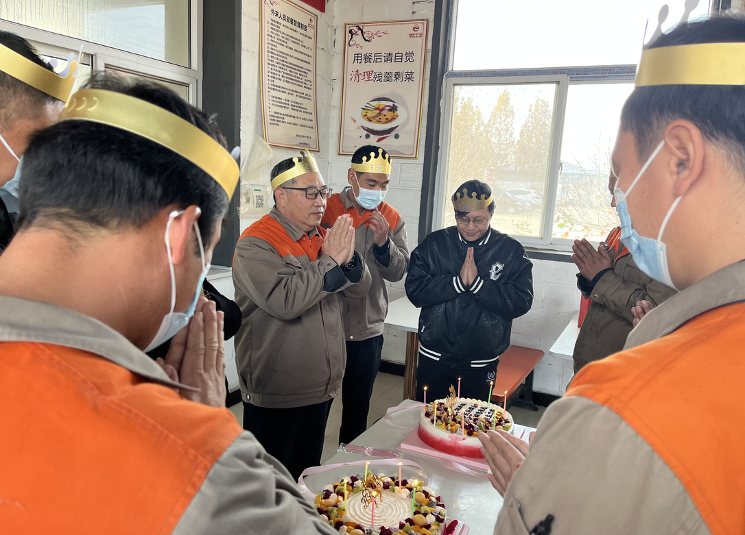 公司食堂準(zhǔn)備了豐盛可口的飯菜,公司準(zhǔn)備了生日蛋糕,董事長(zhǎng)發(fā)表講話,并為過(guò)生日的同志送上生日祝福,公司員工聚在一起唱生日歌,分享生日蛋糕。大家都覺(jué)得十分幸福,因?yàn)槲覀兪窍嘤H相愛(ài)一家人。
