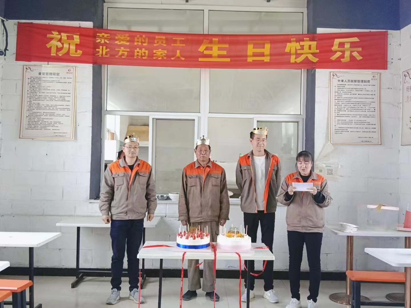 公司食堂準(zhǔn)備了豐盛可口的飯菜,公司準(zhǔn)備了生日蛋糕,董事長(zhǎng)發(fā)表講話,并為過(guò)生日的同志送上生日祝福,公司員工聚在一起唱生日歌,分享生日蛋糕。大家都覺(jué)得十分幸福,因?yàn)槲覀兪窍嘤H相愛(ài)一家人